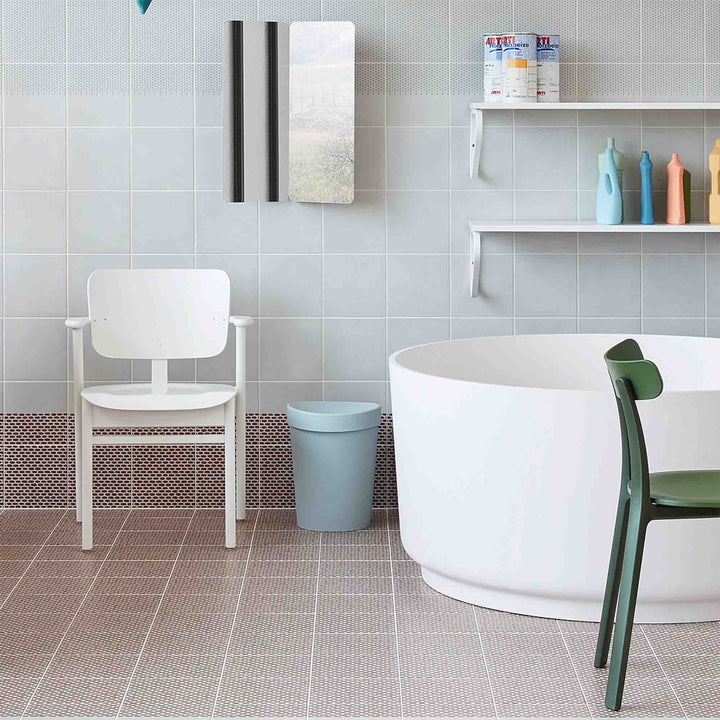Due to its composition, the recycled material is interspersed with tiny specks of pigment. These subtle colour variations perfectly complement the slightly irregular shape of the wastepaper bin: Swiss designer Michel Charlot was inspired by a Hans Arp sculpture when creating Happy Bin RE, which brings an unusual organic design language to the typically austere office.